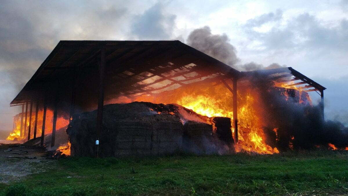 Ce feu de stabulation de 2000 m² a totalement embrasé de la paille et de la semence.