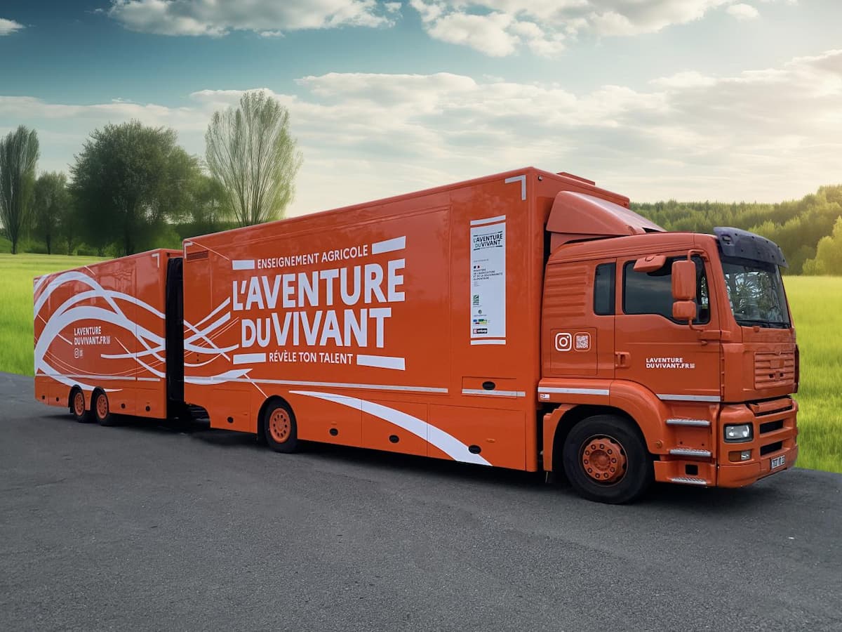 Le camion de l’aventure du vivant est un espace mobile apprentissage une capacité de 50 personnes. Il propose une plongée Immersive dans le monde de agriculture avec des simulateurs de conduite d’engins agricoles, des tablettes connectées, des lunettes de réalité virtuelle, des écrans tactiles interactif et bien plus encore.