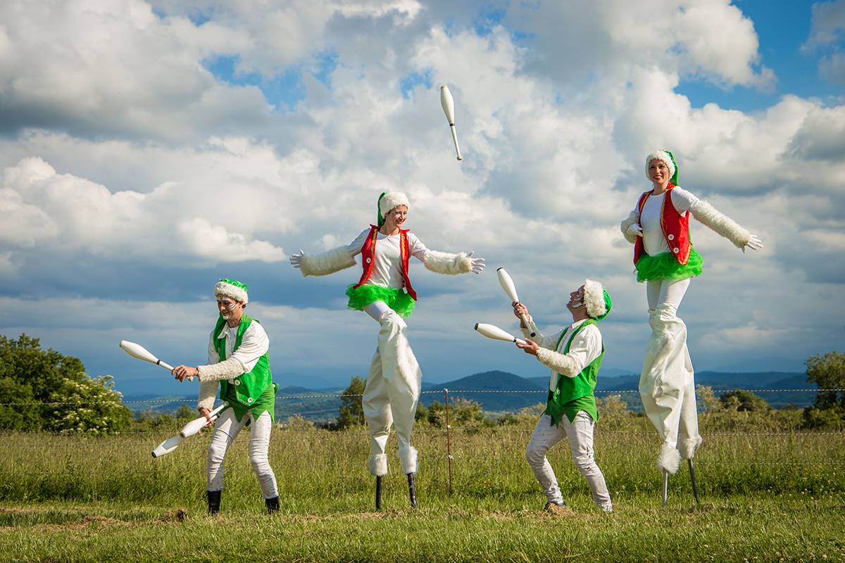 Au programme : Lutins espiègles, bonhommes de neige virevoltants et fées scintillantes. En déambulation sur échasses, au sol ou en monocycle, ces lutins jonglent, sautent et amusent petits et grands. Ils sont accompagnés d’un petit char à bulles qui ajoute une touche de magie aérienne à leur passage.