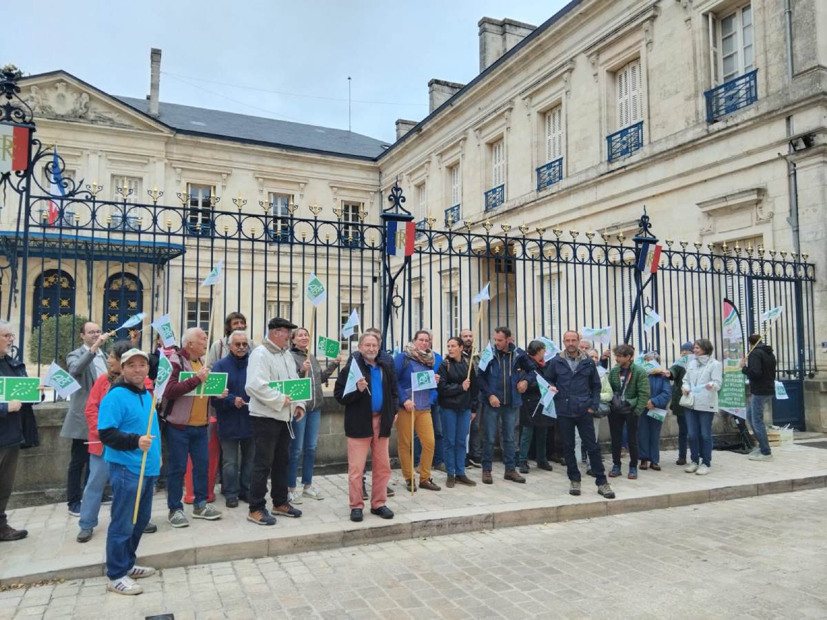 A l’occasion de la journée européenne de la bio et pour répondre à l’appel d’Agrobio 79, environ 70 personnes se sont rassemblées devant la préfecture puis Place des Halles à Niort, ce jeudi 25 septembre.
