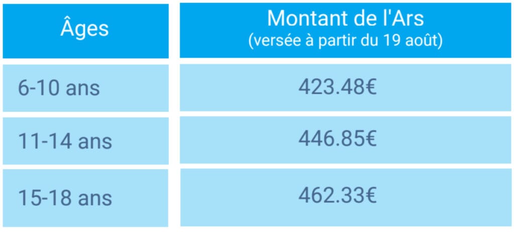 L’allocation de rentrée scolaire (Ars), versée tous les ans sous conditions de ressources à plus de 3 millions de familles en France permet d’aider les familles ayant des enfants de 6 à 18 ans scolarisés, en apprentissage ou pris en charge dans un établissement d’accueil spécialisé, à assumer le coût de la rentrée scolaire.