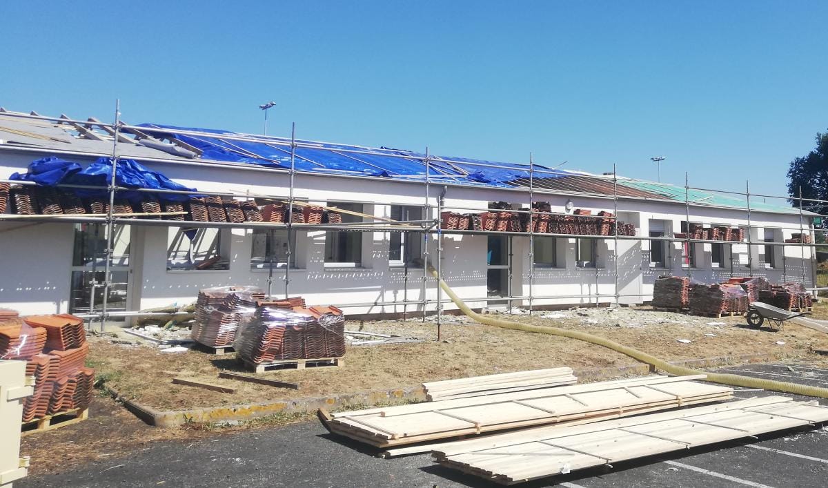 Légende photo : Les travaux de renforcement de charpente et de réfection de la couverture en tuiles se sont achevés cet été au collège Molière de Loretz-d’Argenton. Coût total du chantier réalisé en trois tranches sur ces trois dernières années : 600 000 euros dont 260 000 euros en 2025.