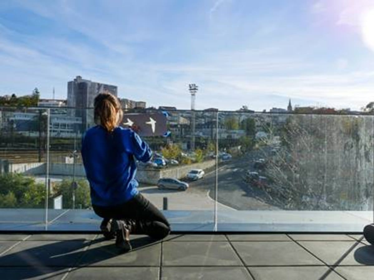 Dans le cadre de la Fête de la science, le musée Bernard d’Agesci invite l’artiste Marianne Villière, du 8 au 10 octobre, à réaliser une fresque éphémère, intitulée « Des nuées », sur la surface vitrée du grand hall.