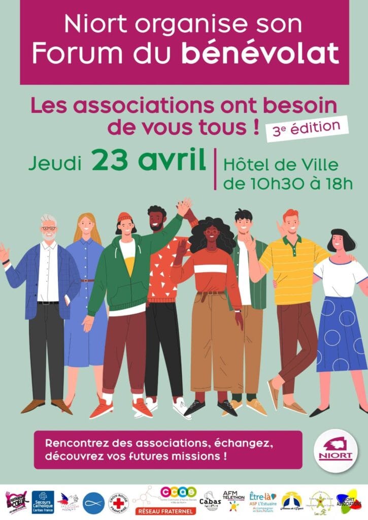Jeudi 23 avril, la Ville de Niort organise la 3e édition de son forum du bénévolat à l’Hôtel de Ville, en partenariat avec Niort Associations. Pour la première fois, cet événement s’ouvre à l’ensemble des associations solidaires de la ville, au-delà des seules structures caritatives.