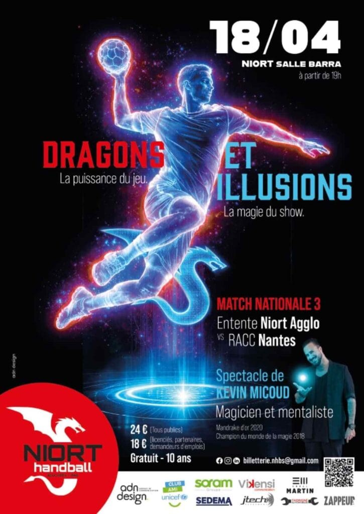Le Niort Handball Souchéen (NHBS) propose aux Niortais une soirée inédite en mêlant sport et spectacle, à l’occasion de l’événement “Dragons & Illusions”, organisé à la salle de Barra.