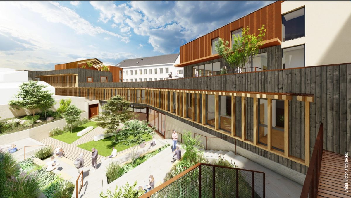 Une base de livraison est installée pour permettre l’acheminement des matériaux nécessaires à la réhabilitation des anciens locaux et la construction de nouveaux bâtiments.