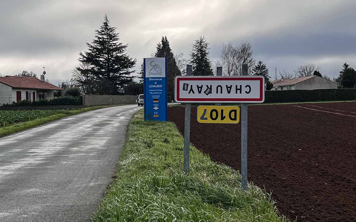 A Chauray comme dans d’autres villes de France, des panneaux d’entrée de ville sont retournés.