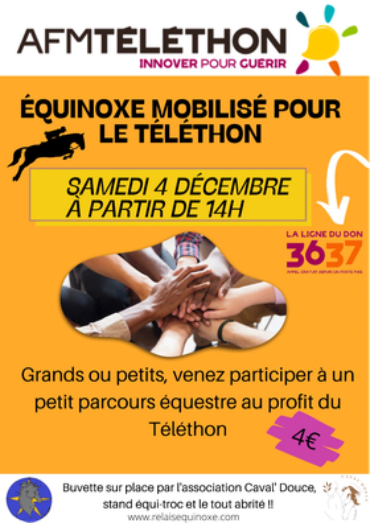 A l’occasion du Téléthon, le Relais Équinoxe à Saint Rémy accueille le public le samedi 4 décembre à partir de 14 heures afin de participer à un parcours équestre ludique et adapté aux petits comme aux grands.