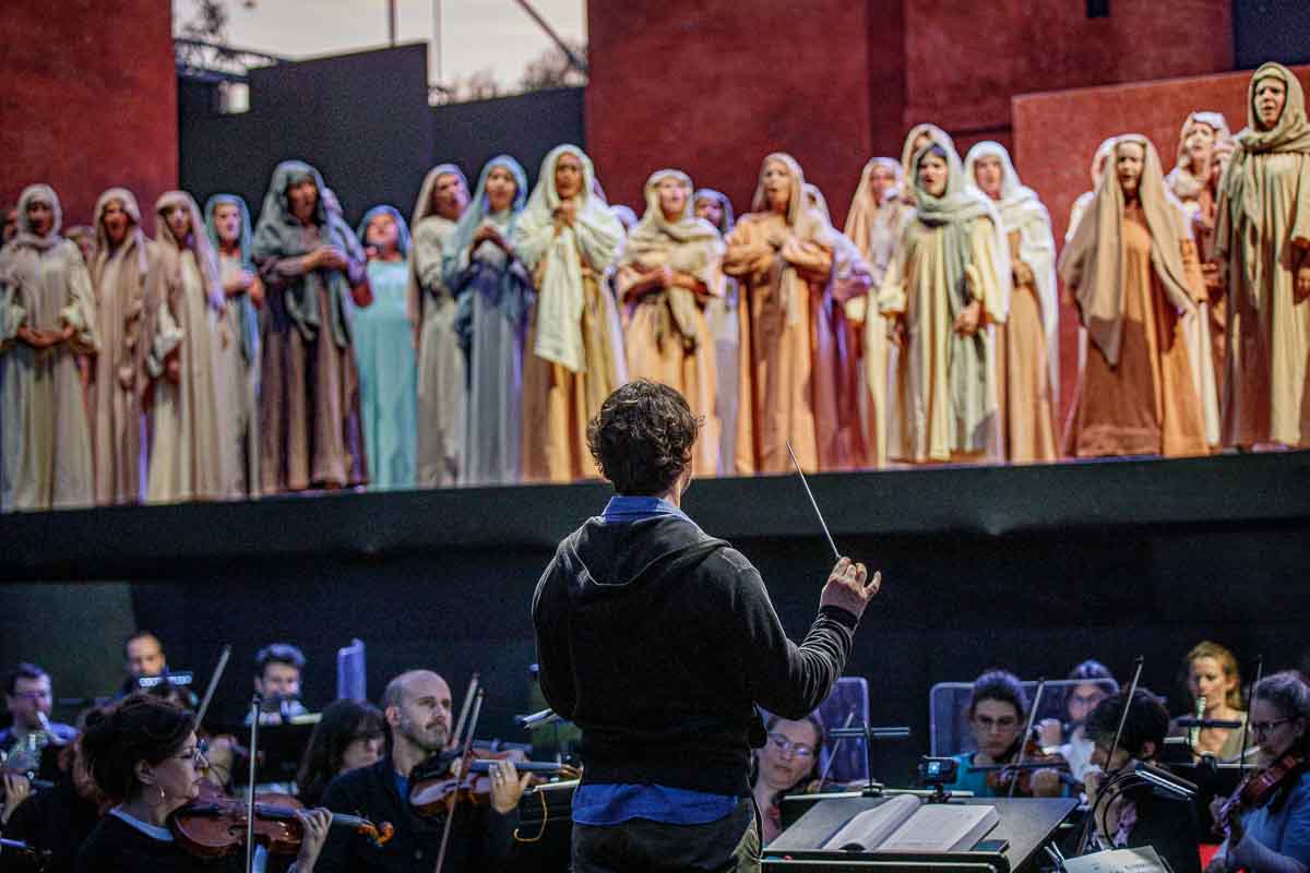 La vingt-cinquième édition des Soirées Lyriques de Sanxay, dans la Vienne, à moins de 40 minutes de Niort, propose cette année Nabucco, opéra de Verdi. L’auteur du XIX sièce, n’avait pas été joué depuis dix ans dans cette arêne gallo-romaine unique, où le soir venu, il convient de s’habiller chaudement. les températures descendent vite pendant le spectacle.
