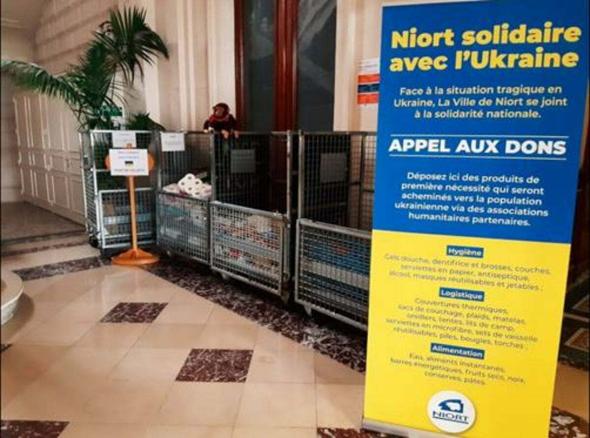 Depuis plusieurs jours, la Ville de Niort reçoit, dans le hall d’entrée de l’Hôtel de Ville, les dons de particuliers. Ils sont nombreux. Et témoignent de la solidarité des Niortaises et Niortais en direction du peuple ukrainien.