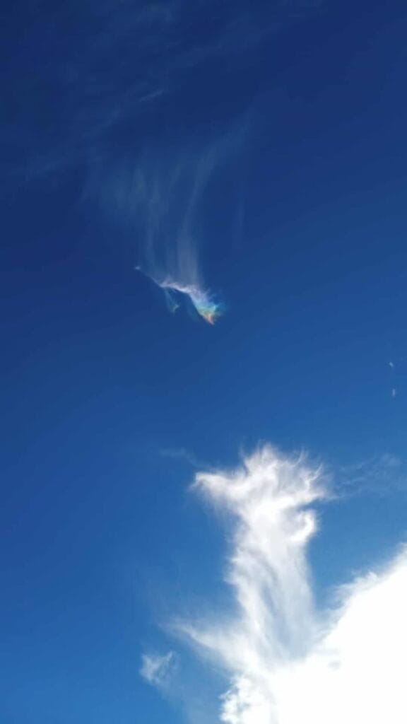 Cette photo a été prise mercredi 8 octobre à Saint-Maixent-l’Ecole. Elle montre ce qu’on appelle « un nuage iridescent, ou nuage irisé« , indique Wikipedia. « C’est un nuage peu épais dont l’écartement des gouttes ou de cristaux de glace provoque, par diffraction, une irisation de la lumière, donnant un aspect coloré au nuage, rappelant les caractéristiques d’un arc-en-ciel. Ce sont les cirrostratus, cirrocumulus ou altocumulus qui exhibent le plus souvent ces taches ou bords brillants, généralement rouges, verts ou roses, observés jusqu’à une distance d’environ 30 degrés de la direction du Soleil ou de la Lune. »