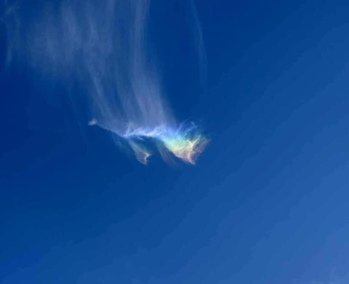 Cette photo a été prise mercredi 8 octobre à Saint-Maixent-l’Ecole. Elle montre ce qu’on appelle « un nuage iridescent, ou nuage irisé« , indique Wikipedia. « C’est un nuage peu épais dont l’écartement des gouttes ou de cristaux de glace provoque, par diffraction, une irisation de la lumière, donnant un aspect coloré au nuage, rappelant les caractéristiques d’un arc-en-ciel. Ce sont les cirrostratus, cirrocumulus ou altocumulus qui exhibent le plus souvent ces taches ou bords brillants, généralement rouges, verts ou roses, observés jusqu’à une distance d’environ 30 degrés de la direction du Soleil ou de la Lune. »