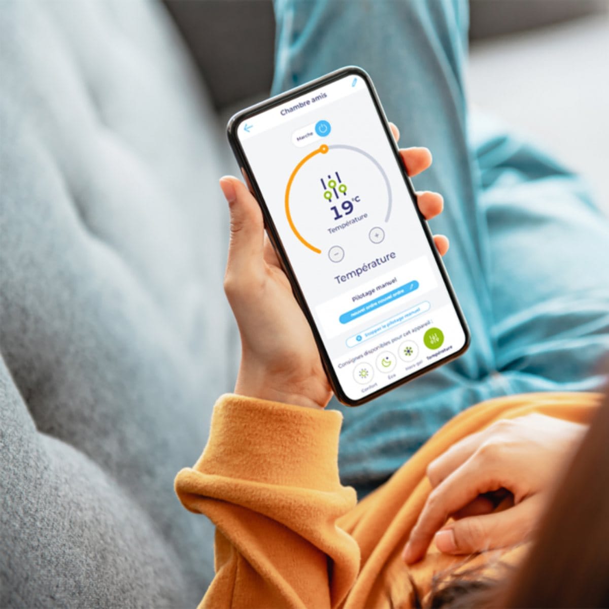 Associé à l’application MyVoltalis, il permet de programmer son chauffage en fonction de ses habitudes et de la température souhaitée.